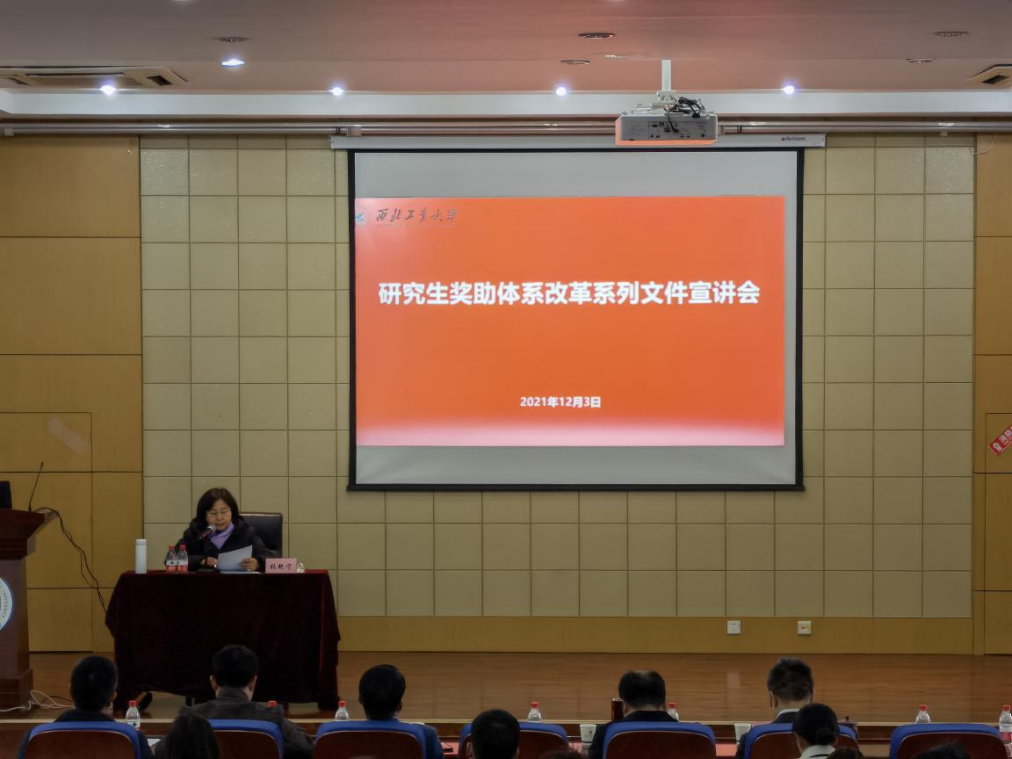 宣讲会上,张艳宁就学校研究生奖助体系改革的概况、奖助学金的分类、综合测评、助研细则等政策的改革意义、申请条件的变化进行详细的讲解,鼓励同学们以德智体美劳全面发展为目标,不断完善自我、发展自我。