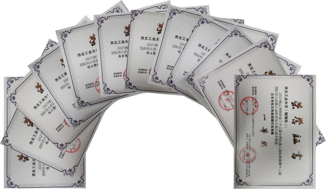 图1西工大队伍荣誉证书