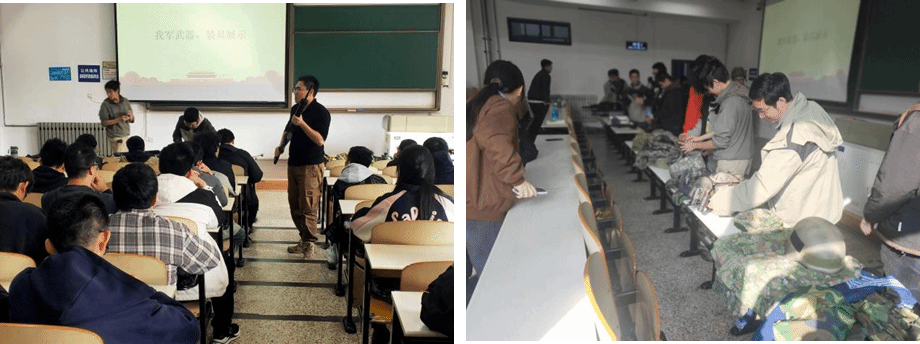 邀校学生军事爱好者协会为2024级本科生进行信息化国防武器装备科普。本活动围绕介绍海陆空三军新兴装备、单兵装备发展解读、轻武器模型操作及激光感应靶射击四个部分展开,通过“科普+体验”的方式让学生在实践中了解国防科技。