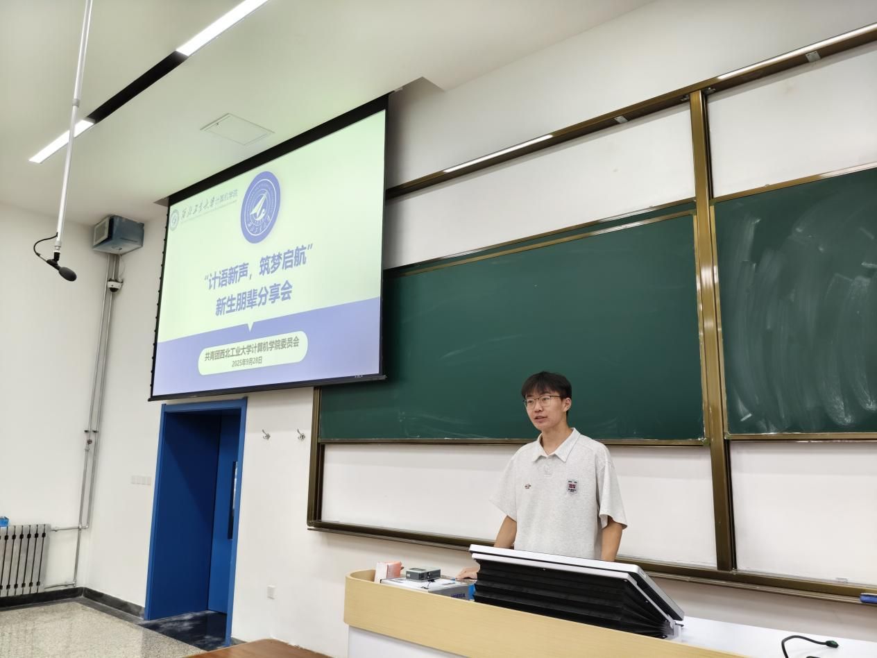 “计语新声,筑梦启航”新生朋辈分享会在教学西楼 D101 教室举行。22 级人工智能专业闻茁、束九禾,23 级计算机科学与技术拔尖班马子越,24 级计算机科学与技术专业张欣杰等优秀学生代表受邀分享,25 级新生到场参会。