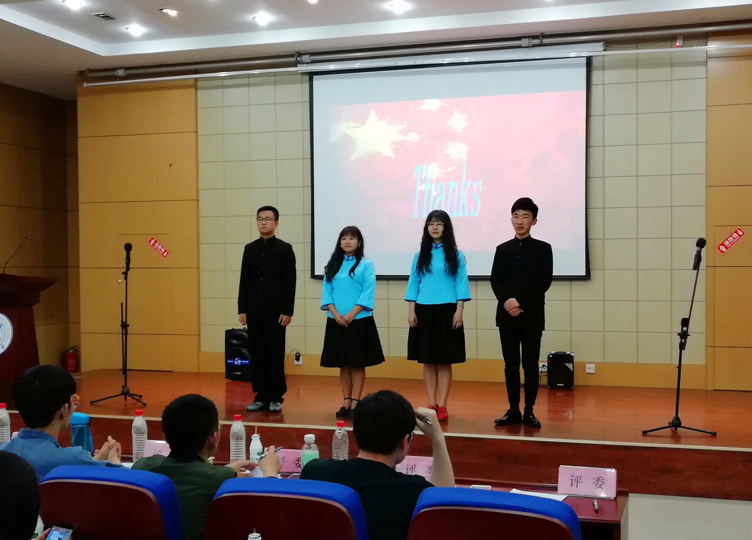 比赛期间,主持人还就相关诗歌、学校历史及党的十九大相关问题与同学们进行了积极热烈的互动。