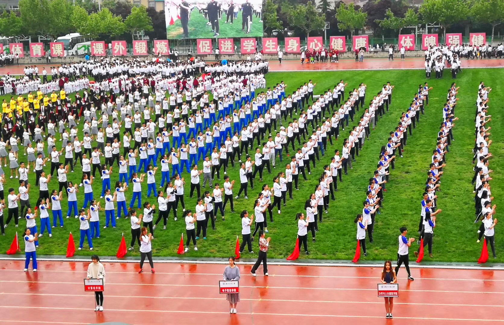 4月24日,我校“第九套广播体操”团体比赛在长安校区云天苑体育场进行,由研究生辅导员周颖领操、兼职辅导员苏理领队的免费AV