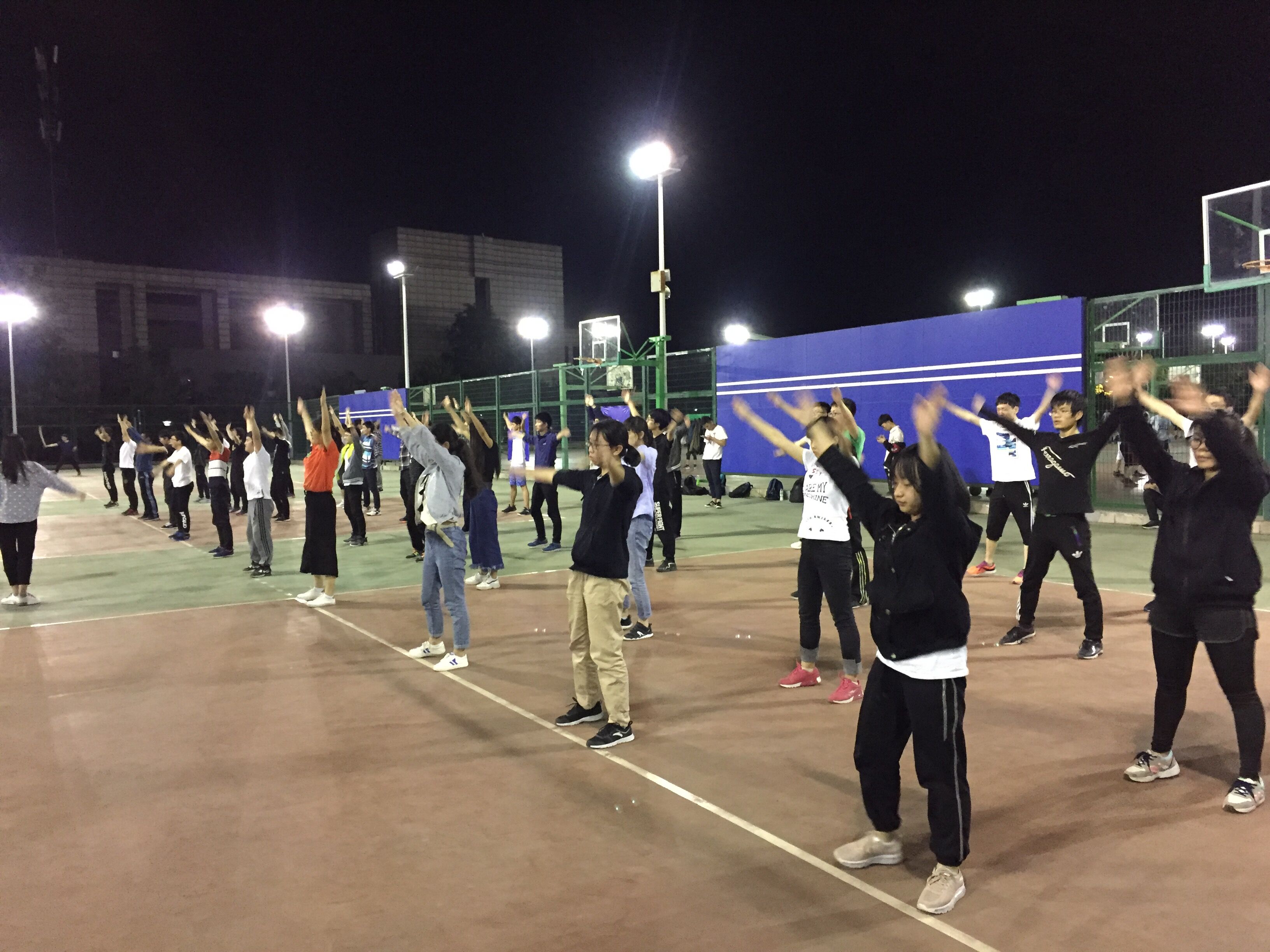 为进一步落实党的十九大精神中关于“广泛开展全民健身运动,加快推进体育强国建设”的要求,促进学生身心健康,增强体质,培养学生集体主义荣誉感,调动和激发学生参与体育锻炼的积极性,在本科生中组建广播体操队参加此次比赛。自组建起,利用课余时间,广播体操进行了长达一个月的训练。
