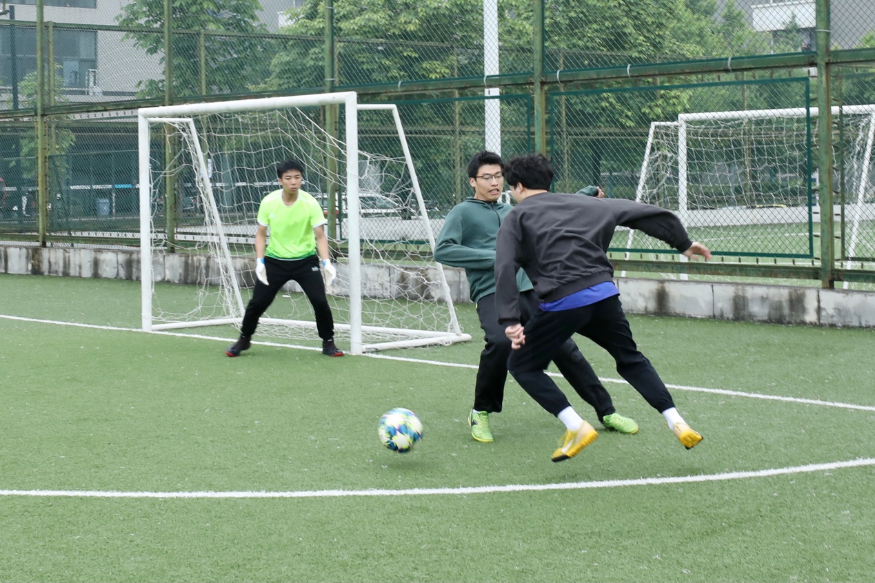 中场休息,两队女生互罚点球,但很遗憾均未能给班级添上一分。