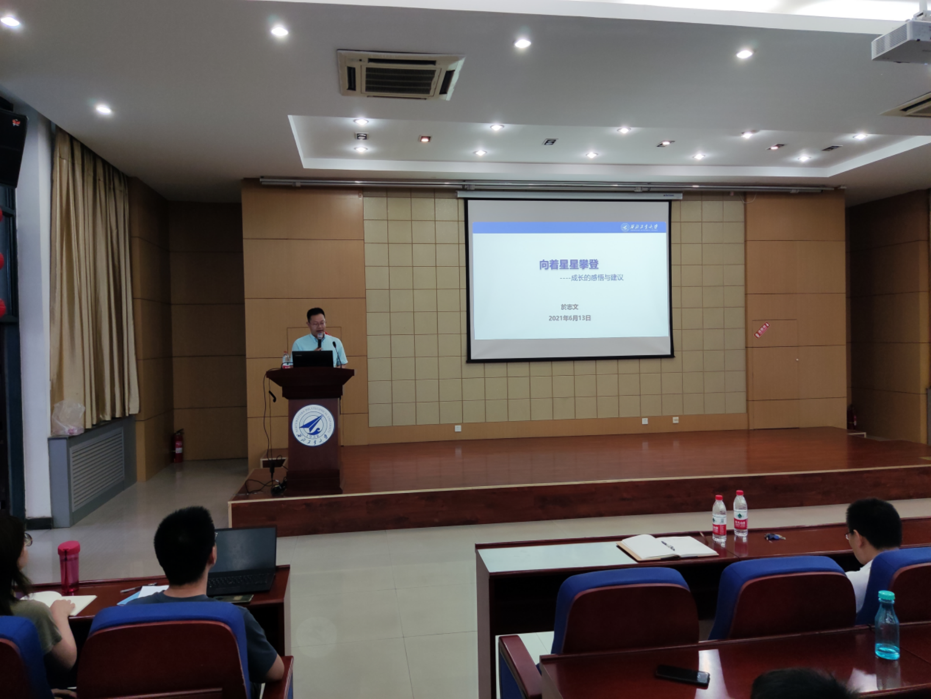 新报告厅顺利举行。学院1996级学长於志文教授以“向着星星攀登”为题为同学们带来一场精彩报告,近200名学院师生参加。学院党委副书记万海东主持报告会。