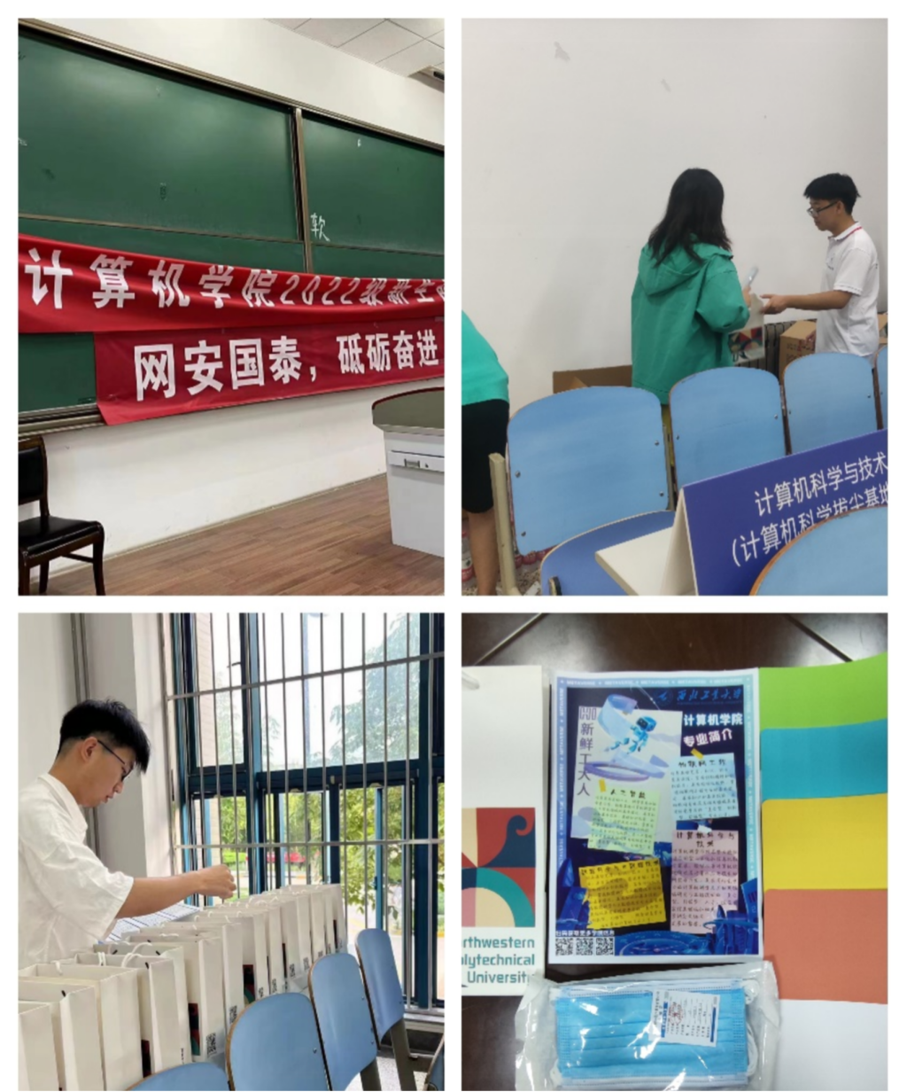的各位老师同学积极筹备各项迎新事宜,陪伴新生一起走好“开学第一步”。