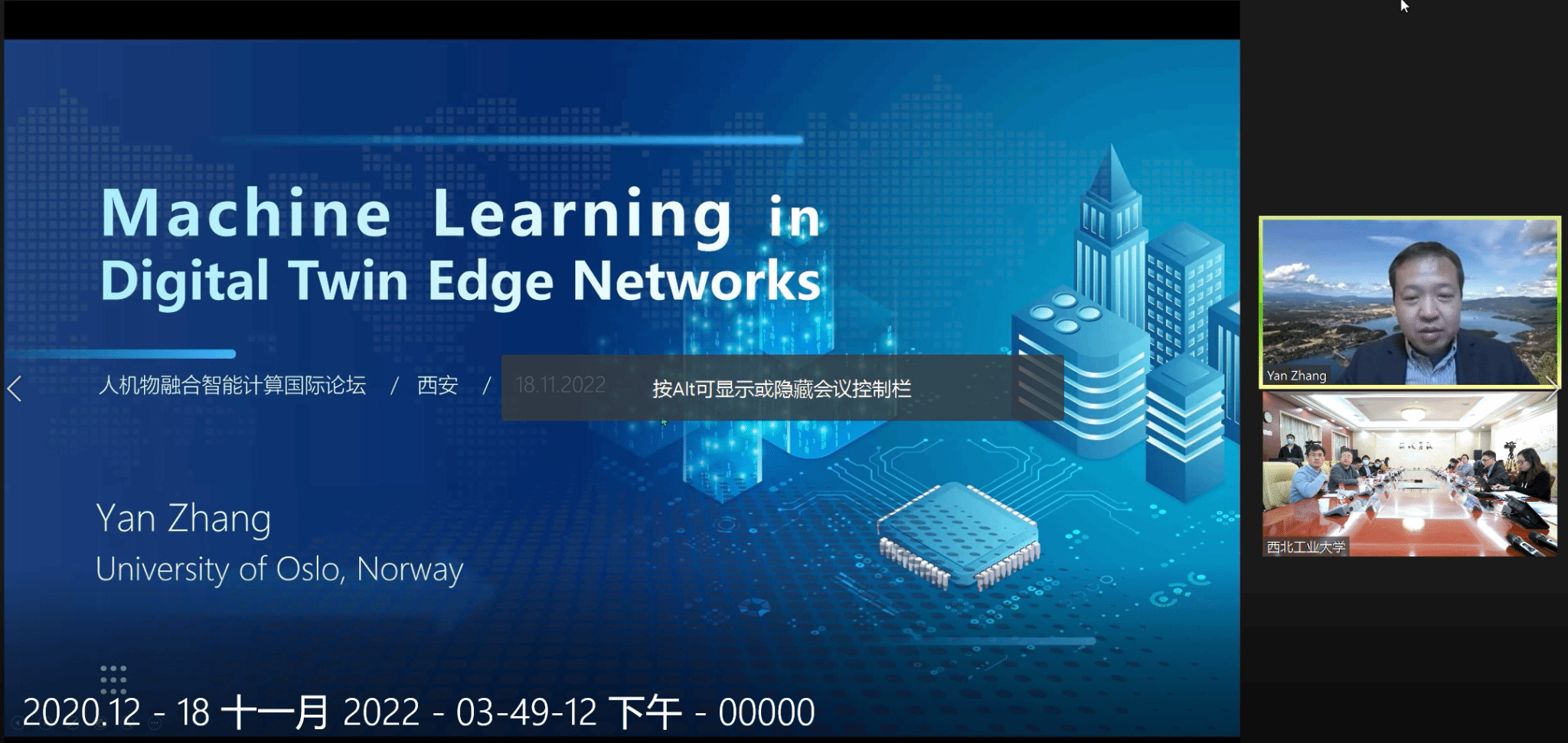 论坛第一部分由IEEE Fellow、欧洲科学院院士Yan Zhang教授发表了以《Machine Learning in Digital Twin Edge Networks》为主题的主旨报告。Zhang教授认为,数字孪生作为一种有效的信息表示技术,能够有力支持国家数字化发展战略,在产业界和学术界得到同步快速发展。他从多个角度对数字孪生技术进行了剖析,并从数字孪生边缘网络的实现出发,详细阐述了数字孪生边缘网络的构建与应用的相关问题,开拓了师生的研究视野。报告结束后,与会师生踊跃发言,积极提问。Zhang教授与师生进行了热烈讨论,就数字孪生、区块链等方面的提问作出详细解答,介绍了相关研究焦点问题的最新风向。