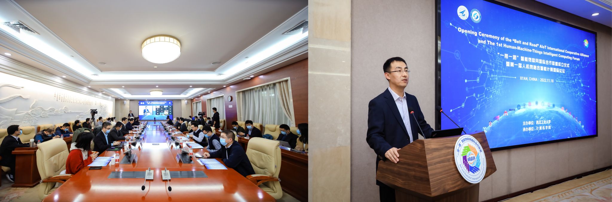 承办的第一届人机物融合智能计算国际论坛在我校友谊校区国际会议中心第二会议室举行,会议通过线上线下相结合的形式举办。