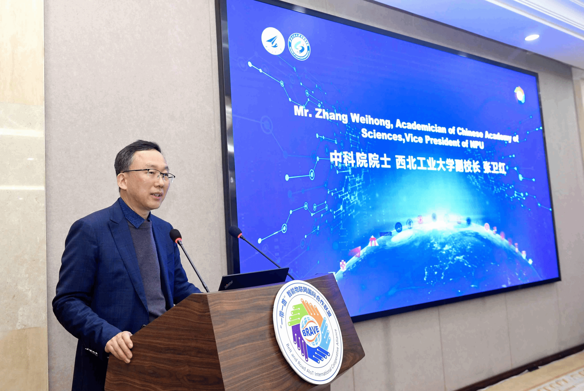 随后,与会嘉宾上台参与联盟启动仪式,并由张卫红校长宣布“一带一路”智能物联网国际合作联盟正式成立。