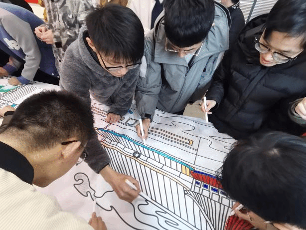 活动结束,所有同学举起共同绘制的“百米画卷”合影留念。画卷画出了同学们爱党爱国的热情,坚定了同学们在新时代爱党爱国的信念,激发了同学们在未来各自的领域里努力奋斗、拼搏向上,勇做时代的弄潮儿的拼搏精神,青年们必将在未来国家的繁荣发展的画卷上添上一抹色彩,共同绘制我们美丽的“千里江山”。