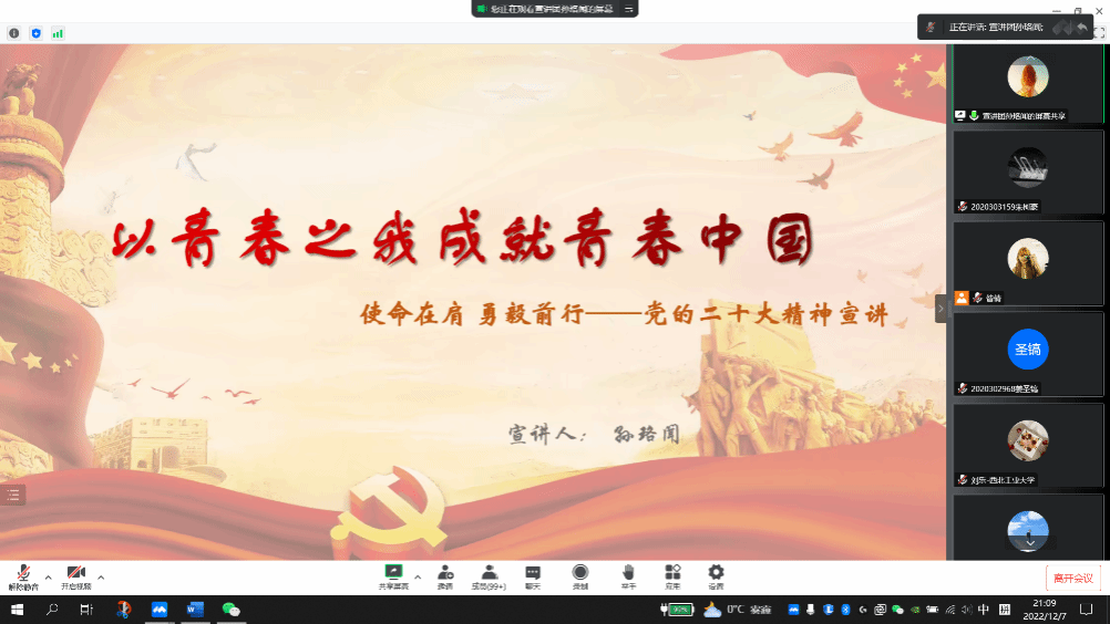 青春心向党,百年新征程。为进一步深入宣传贯彻党的二十大精神,不断增强青年团员们的凝聚力和向心力,以奋斗之我践行“请党放心,强国有我”的青春宣言。12月7日晚,免费AV