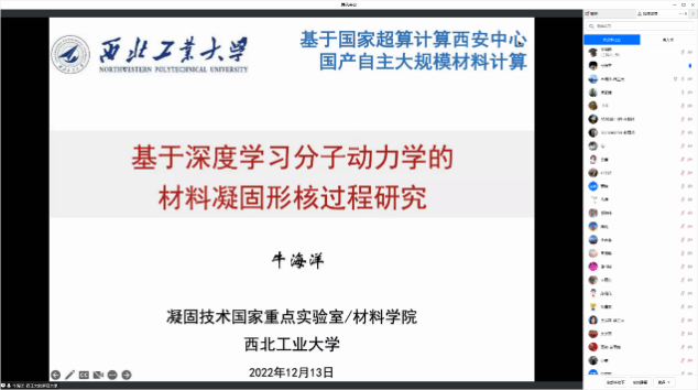 的侯正雄副教授主持了超算前沿技术研讨会。郭伟科老师介绍了国家超级计算西安中心的建设和应用情况,潘书诚教授和牛海洋教授分别作了题为《基于国家超级计算西安中心的流体数值模拟程序开发》、《基于深度学习分子动力学的材料凝固形核过程研究》的报告,朱虎明副教授作了题为《基于国家超级计算西安中心大规模DCU的遥感图像目标检测并行训练算法》的报告。与会者围绕超算和人工智能融合的应用、自主研发和开源软件等展开了热烈讨论。