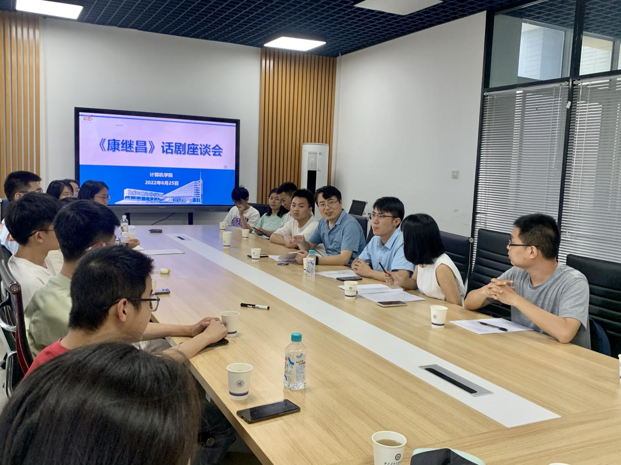 首演结束后校领导、院领导和康先生的弟子代表周兴社教授等,与演职人员就话剧《康继昌》进行了交流研讨。