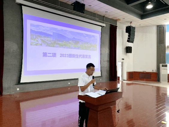 会议第二项,由2023级本科生冯炳宝代表全体新生发言。他表达了进入免费AV