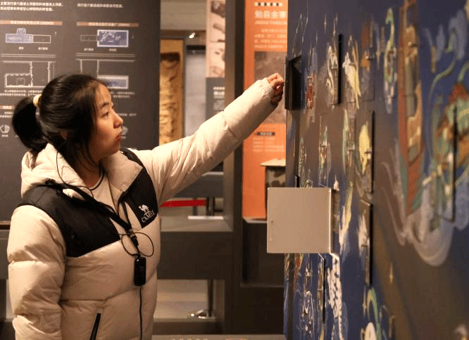 进入博物馆内,同学们跟随讲解员首先进入“考古历程篇”展馆,学习中国考古学的发展过程。在这里,同学们了解了中国古人对考古学做出的贡献、现代考古调查方法和陕西考古发现总览。