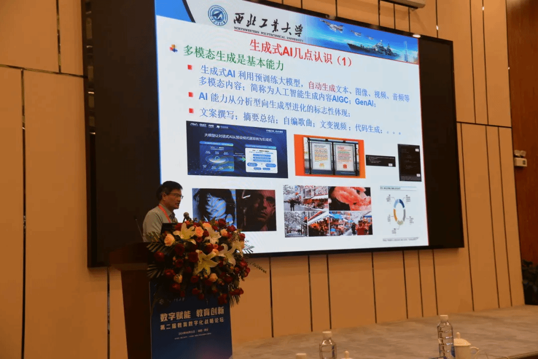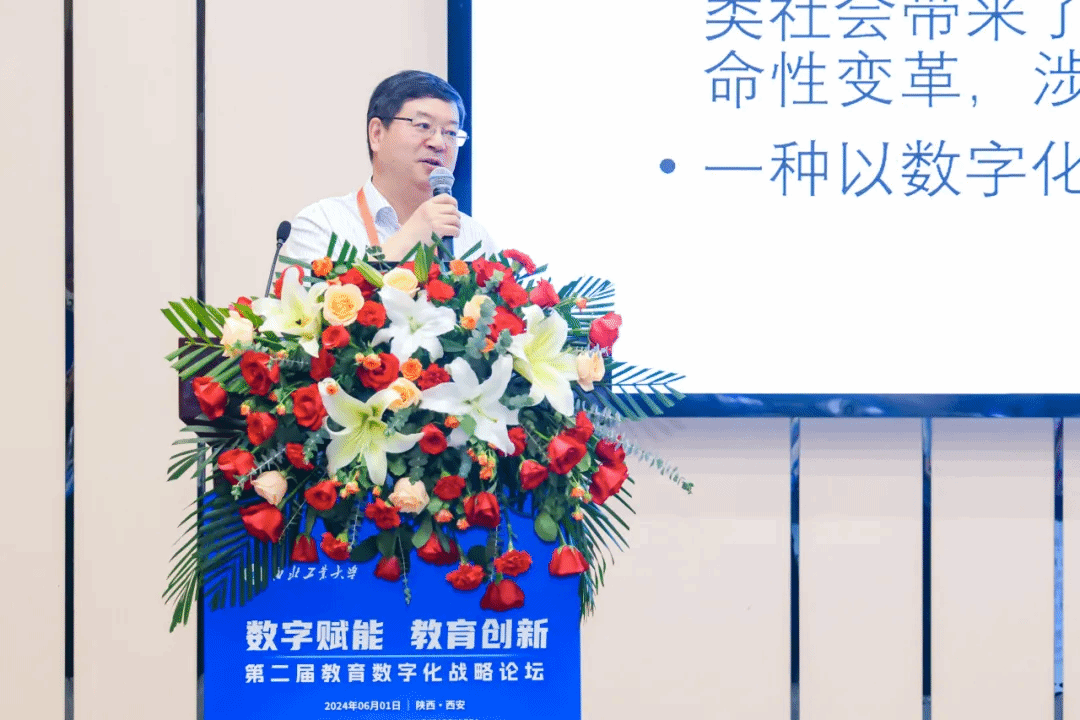 副校长张艳宁致欢迎辞,向与会嘉宾学者介绍了西工大脉源三支、“西工大现象”和“总师”育人文化,相信本次论坛会为教育数字化发展注入新的活力,推动人工智能在教育领域的广泛应用,构建人工智能全方位互动的教育体系,期待与大家共同推动教育数字化战略发展,预祝论坛圆满成功。