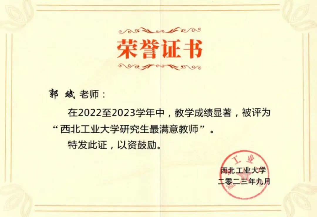 优秀博士学位论文”,13名同学入选西工大优秀硕士毕业生,1名同学入选西工大优秀博士毕业生。