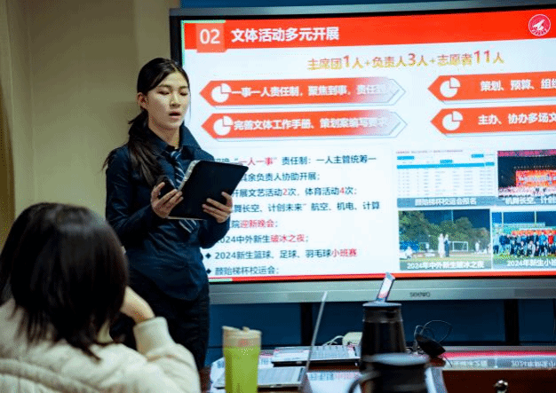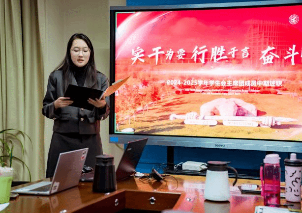 会上,各部门负责人及主席团成员依次进行了述职答辩,他们围绕本学期的工作成效、个人感悟、总结反思及未来规划等方面进行了汇报,并由常任代表委员会进行了评议打分。