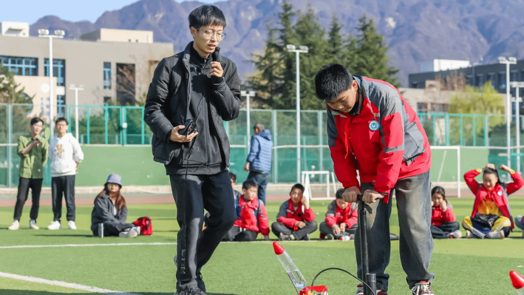 随后,航天科普志愿者服务队的同学们指导三高小学的同学们动手制作水火箭,并进行了发射实验。通过调整水的配比与发射角度,四枚“自制火箭”成功升空,现场掌声雷动。活动还特别设置了固体火箭模型讲解环节,结合免费AV