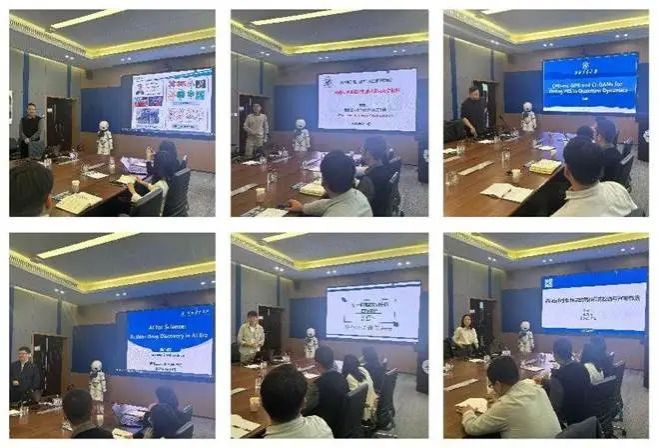 随后,彭佳杰介绍了AI for science交叉研究中心的建设背景、思路与举措、近期成效以及下一步研究计划。双方与会青年教师分别就AI药物设计、生物医学数据库、大数据模型[JP1] 、高强韧仿生高分子、电化学储能等研究领域作了精彩绝伦的报告分享,大家结合自己的研究领域畅所欲言,互有启发,碰撞出了思维火花。