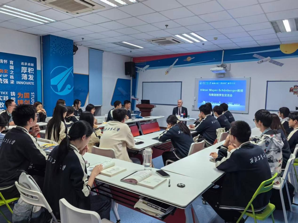 在校期间,舍恩伯格教授与铸剑班学生代表亲切交流。铸剑班作为学校培养拔尖创新人才的重要载体,汇集了来自各个学科领域的优秀学生。交流中,铸剑班的同学们展现出强烈的求知欲和创新活力。舍恩伯格教授表示,与充满活力的青年学生交流是他期待的环节,希望能通过交流,将学术理念传递给年轻一代,激发他们对数据科学的兴趣与热情。