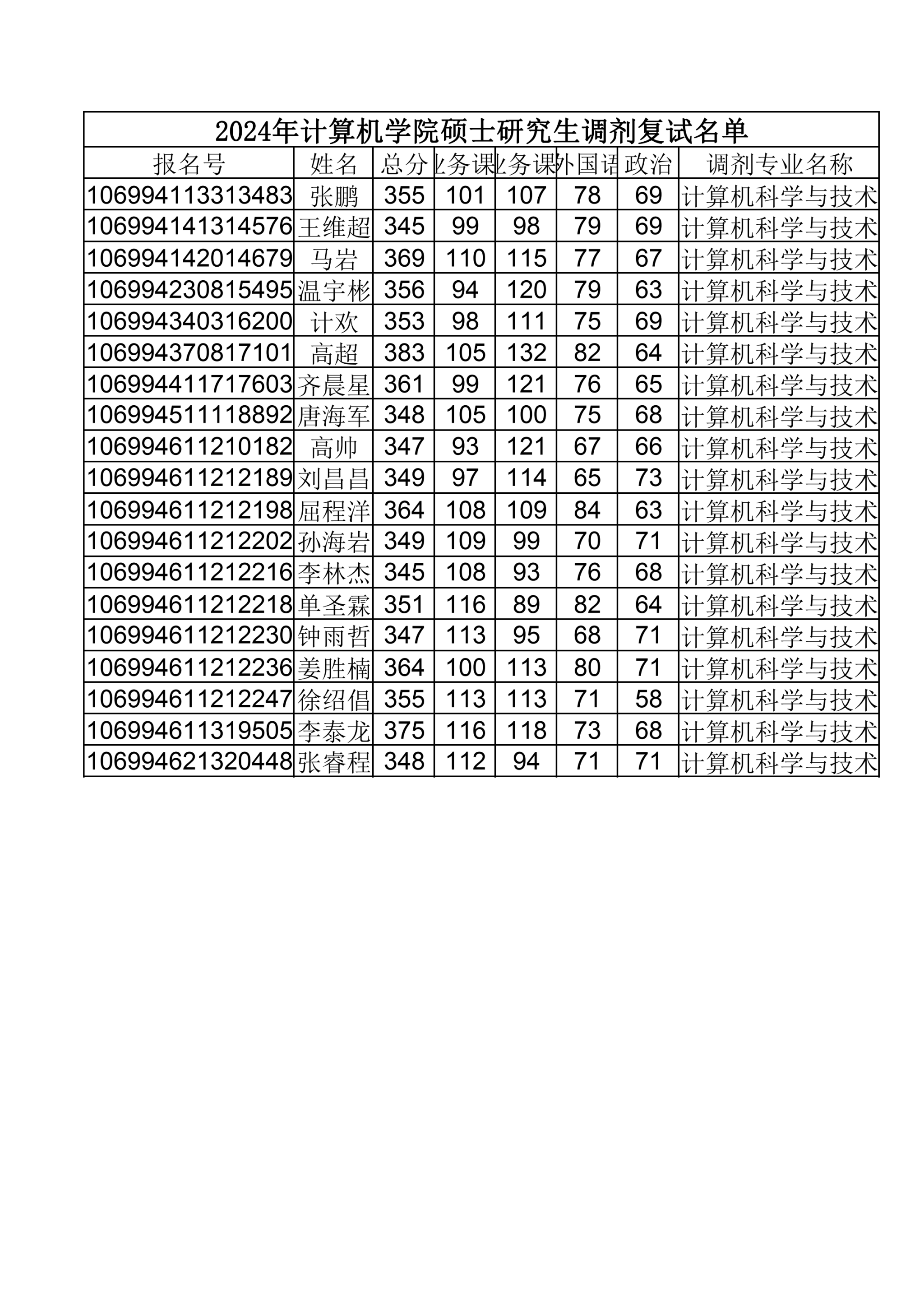 2024年免费AV 硕士研究生调剂复试名单