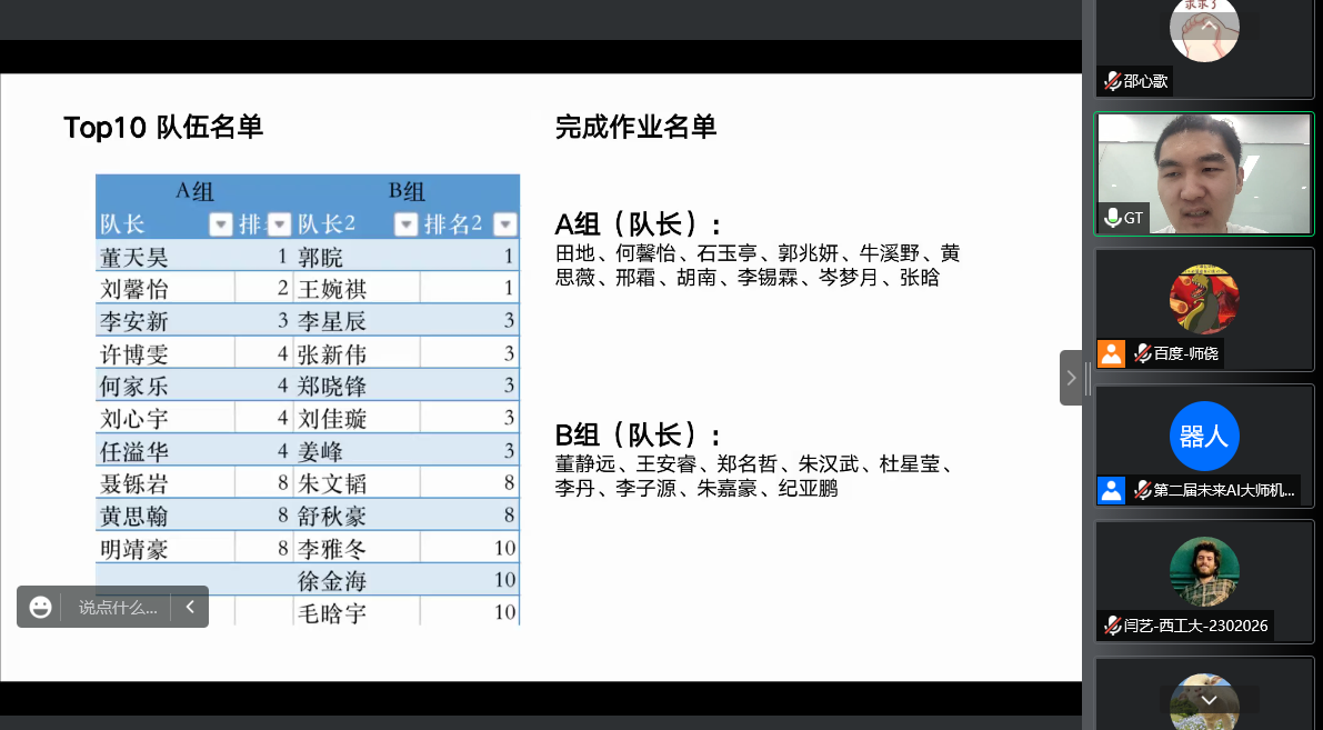 赛题任务及评审环节主要由百度飞桨提供。百度作为领先的AI公司,一直重视在技术领域的投入。百度飞桨作为中国首个丰富开放的产业,以百度多年的技术研究和应用为基础及深度学习核心训练和推理框架,集丰富的工具组建于一体。在此次夏令营,为满足不同专业基础学生的学习需求,百度飞桨为营员们提供了AB两组不同难度的赛题,并由两位专家及三位人工智能相关专业背景的高水平开发者组成了助教团队,为营员全程提供任务指导、技术支持,助力营员迸发创意灵感,快速实现AI想法,创新AI应用,拓宽技术视野。本次共有140余名同学成功完成了任务,7月29日下午,百度飞桨张弘基在线上开展项目评审,同时公布了优秀小组名单。并邀请部分优秀小组代表介绍创意,展示项目成果。在欢快的氛围中,本届夏令营圆满结束。