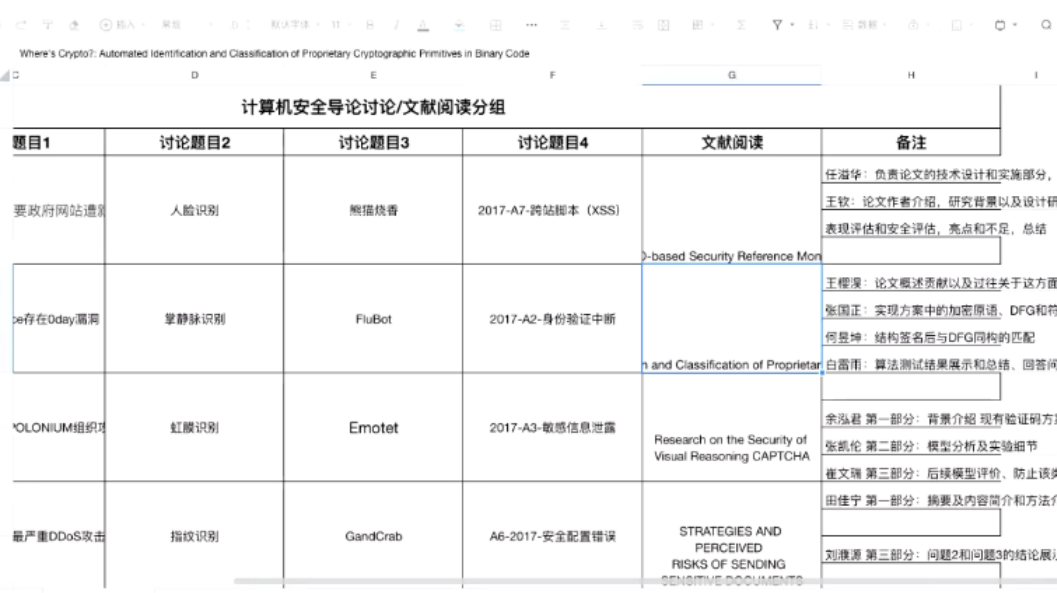《Introduction to Cybersecurity》 课程介绍多种安全概念、安全问题及安全防御技术。涉及的主题包括但不限于密码技术和应用、攻击和漏洞识别、防御和对策、安全工具和技术以及安全相关道德和法律内容。本课程作为网络安全专家的入门课程,帮助学生为网络安全职业打下坚实的基础。该课程的授课目标是提高安全意识和系统保护意识、提高网络安全相关工作的道德规范。在教学内容上从不同角度来提高选课学生的国家安全意识、公民意识、隐私保护意识。此外,在教学方法上,授课教师采取了论文阅读、课堂讨论、文章阅读和信息搜索等各种方式,让同学们不仅能够学习到相关的网络安全的基础知识,还能提高综合研究、演讲报告的能力。在为期两周的课程学习中,学生认真听讲、积极互动。整个教学环节理论与实践相结合,让同学们不仅学到了专业知识,还了解了最新的计算安全领域的课题研究,受益颇丰。