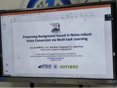 姚继珣的报告主题为“保留背景音的噪声鲁棒语音转换”。保留背景音的噪声鲁棒语音转换的主要思路是在存在背景噪音的情况下,将源语音转换为目标语音,同时保持背景噪音的一致性。他提出一种基于多任务学习的端到端框架,通过顺序级联源语音的分离模块、瓶颈特征提取模块和语音转换模块,以实现转换后语音保留源语音背景音的功能。实验表明,该方案在说话人相似度与音质上显著优于基线系。