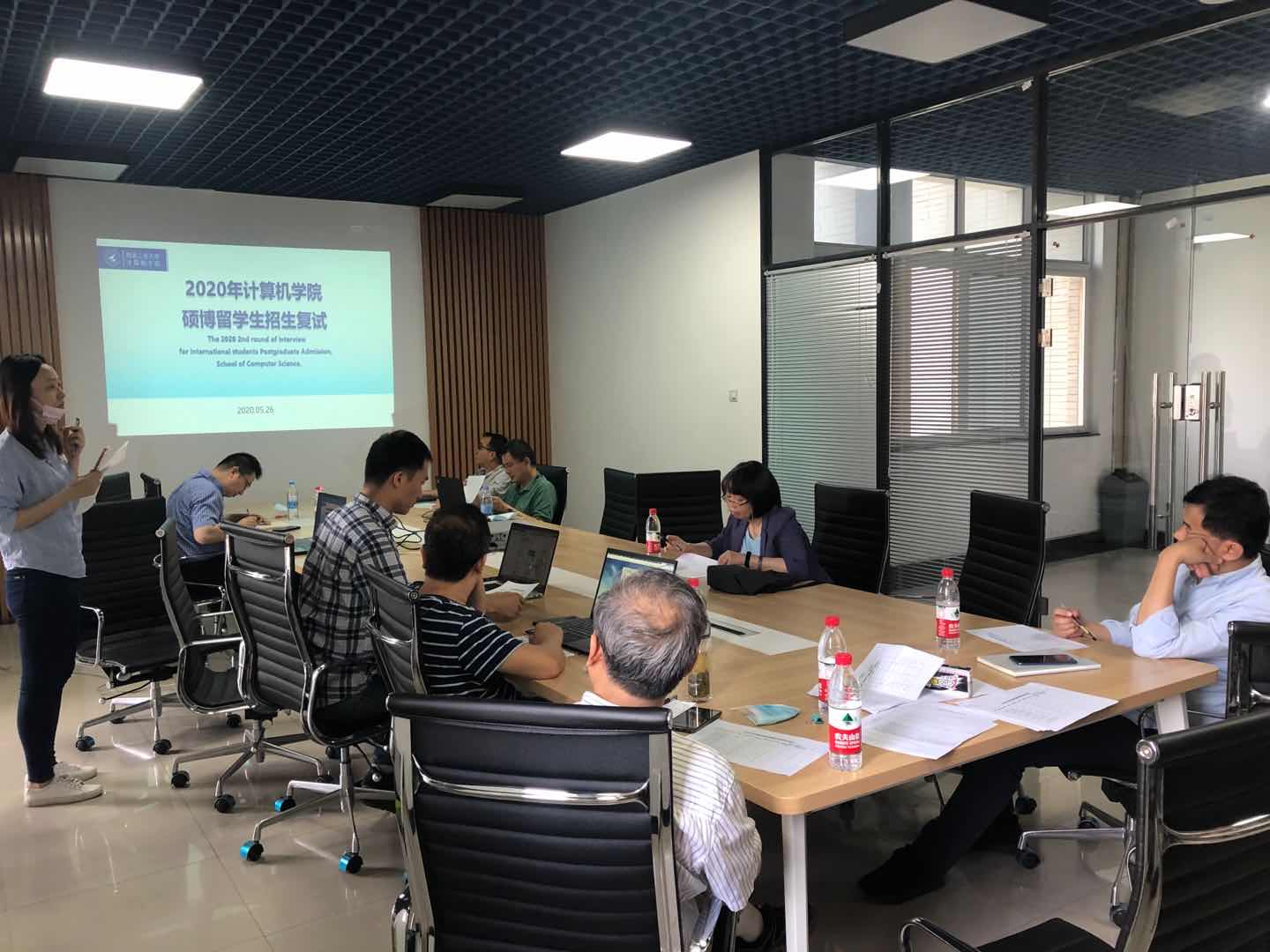 在学院楼4楼多功能会议室举行了2020年硕博留学生招生网络远程复试。8位评委及15名考生参加了skype远程复试。